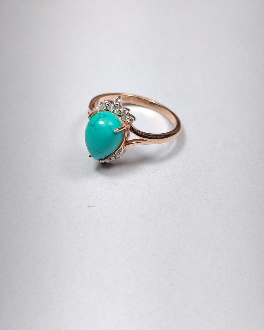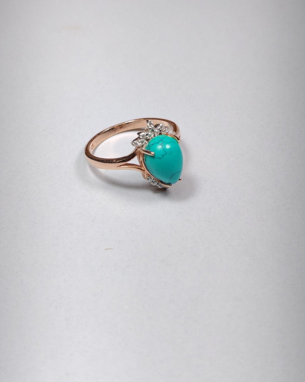 Rose Gold-Plated Ring with Teardrop Turquoise Stone & CZ Accents