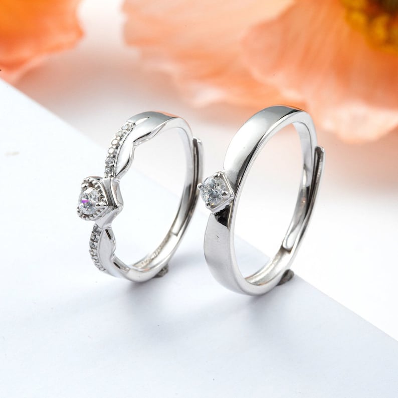 HeartZirconS925SilverCoupleRings_MatchingRingsforCouples_PromiseRings_AnniversaryAdjustableRings_CoupleRingSetJewellerHandmadeitemMaterials-SilverGemstone-ZirconGemcolour-WhiteB